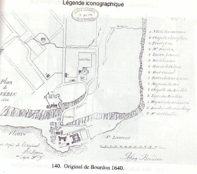 Suite à la découverte en 1976 du plan de Pierre-Louis Morin (1) par madame Raymonde Gauthier (2), on localise la chapelle_Champlain ainsi que le logis de Jean Bourdon, cet arpenteur notoire qui nous a légué des cartes impressionnantes de Québec. Cependant, ce plan semble poser problème à plusieurs égards selon Carl Lavoie (3).