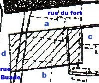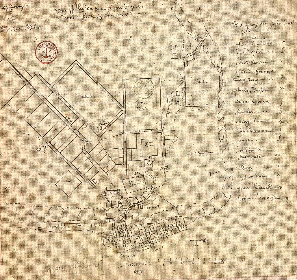 Explication: Toujours présent en pointillé sur le plan de 1660 de Bourdon à l'ouest du Fort des Hurons.