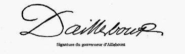 Louis d'Ailleboust Lieutenant général du Roi et Gouverneur dans toute l'étendue du grand fleuve Saint-Laurent en la Nouvelle-France Rivière et Lacs y descendants et lieux qui en dépendent. En vertu du pouvoir, à nous donné par Messieurs de la Compagnie de la Nouvelle-France et sous le bon plaisir d'ici en faisant la distribution des places situées dans l'enclos de Québec. Nous nous sommes réservé une place située dans le dit enclos contre la chapelle Champlain,