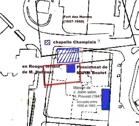 En 1660, sur le plan de Jean_Bourdon, on retrouve la cabane-école de Martin Boutet et la maison de Jean Jobin occupée entre 1658 et 1663. Mathieu Huboust (5), marguillier, reçoit sa concession en 1661 et la chapelle_Champlain existe toujours et constitue la borne est de son terrain. Les héritiers de Madame d'Ailleboust et la Fabrique_Notre_Dame_de_ Québec se disputeront le reste de la réserve d'Ailleboust.
