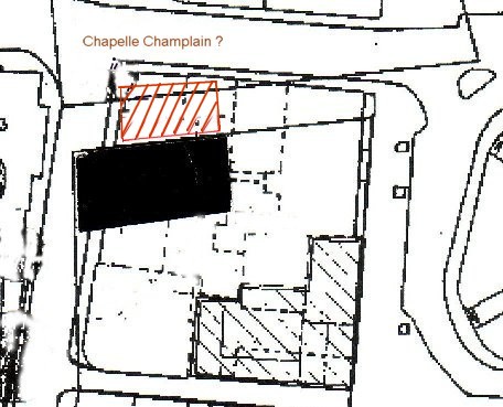 (1) Lavoie, Carl, Recherche multidisciplinaire sur la localisation du site de la chapelle_Champlain à Québec, 1999. avec la participation de Paul Grimard, Georges Larouche et Maurice K. Séguin. Publié pour le mouvement Francité, 45 p., figure 11